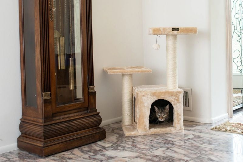 Prime real estate. Give your cat the style and luxury he or she will love with a fun cat tree house. Available in a variety of shapes, sizes, and colors, cat condos and stands provide hours of fun and play — the perfect place for your kitty to take a mid-afternoon nap!