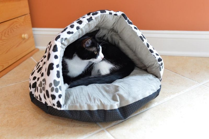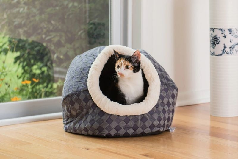 Your little lion's den. Catslove to nap in warm, dark and hidden spots. They enjoy a little bit of privacy, especially as they’re snoring away! Hideaway beds provide a cozy and safe place for your cat to hide and sleep. Give your kitty something to purr about as he or she sleeps peacefully surrounded in coziness and softness.